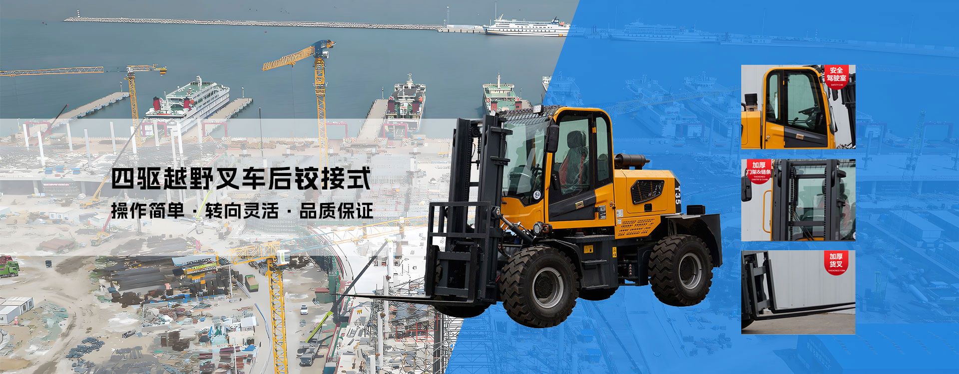 本公司是專業(yè)的越野叉車廠家和四驅(qū)越野叉車廠家,是多年生產(chǎn)工程機(jī)械、建筑機(jī)械的企業(yè),擁有十幾年的設(shè)計(jì)制造歷史和精密的機(jī)械加工能力及技術(shù)人才。旗下?lián)碛械脑揭安孳囅盗泻w3-10T,滿足了不同客戶的使用需求,產(chǎn)品引進(jìn)歐洲先進(jìn)設(shè)計(jì)理念和技術(shù),自主研發(fā)的多種款式越野叉車以及叉車專用的變速箱和后輪驅(qū)動(dòng)轉(zhuǎn)向橋,擁有國(guó)家新型設(shè)計(jì)實(shí)用專利,轉(zhuǎn)向角度大,整機(jī)性能質(zhì)量可靠。